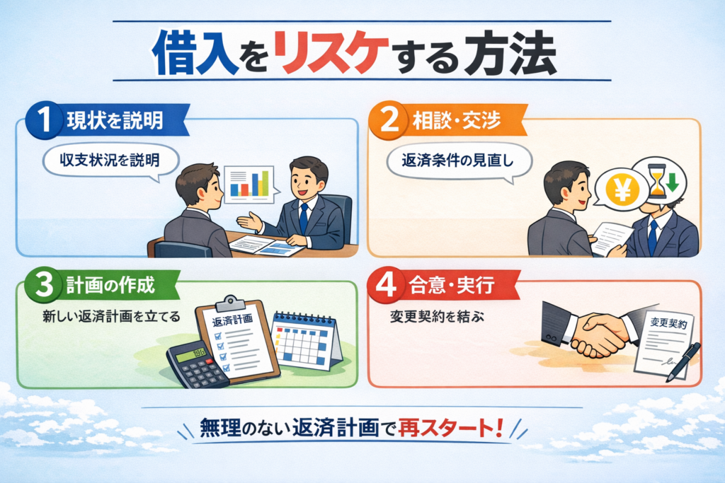 借入返済を軽減し資金繰りを改善する方法です。毎月の借入返済がきつい中小企業のためのサービスです。